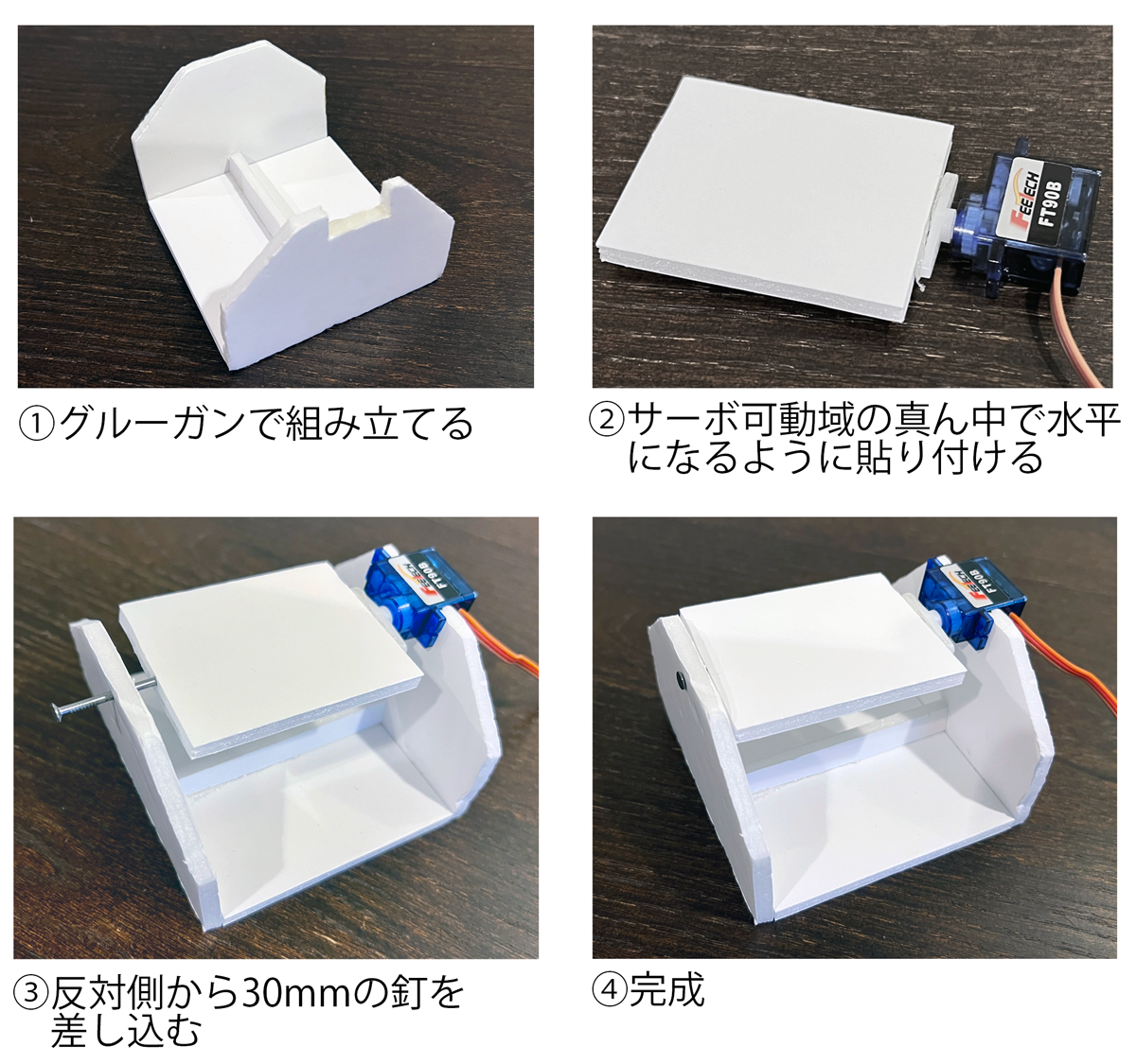 - 裁断した部品は、グルーガン(なければ接着剤)で組み立てます。