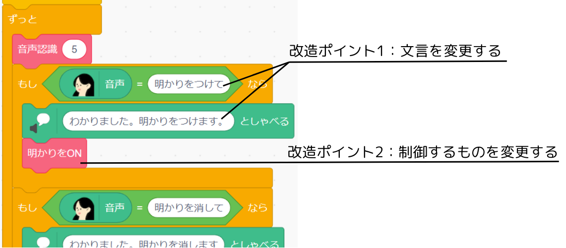 - プログラムを書き換える。(例:部屋の照明)