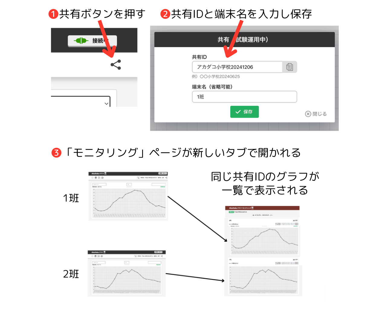 - 実験で各班のグラフを先生の電子黒板でリアルタイムモニタリング
