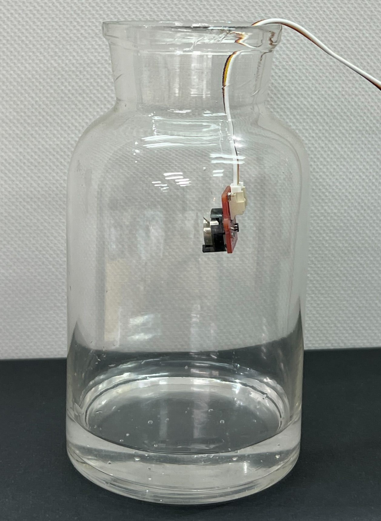 - 集気瓶の中に空気センサーを入れる。(濡らさないように!)